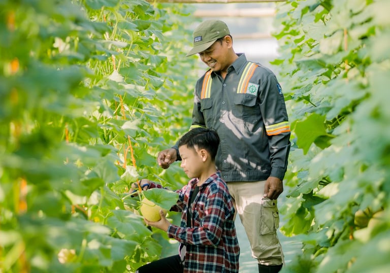 Panen bersama teman adalah hal yang menyenangkan. Kamu bisa bermain, dapetin ilmu, dan yang jelas kamu bisa dapetin buah melon yang seger banget! π